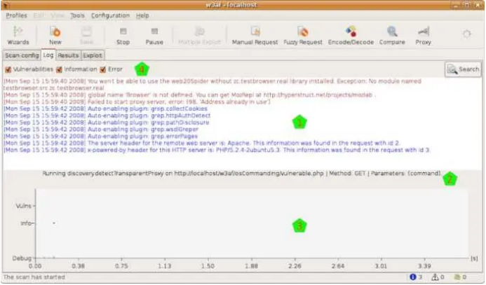 w3af來自命令行和圖形用戶界面,以適應駭客的需求。在少於5次點選併使用預定義配置文件的初學者,可以審計Web應用程式的安全性。正如它有據可查,新用戶可以輕鬆找到自己的方式。作為一個開源的駭客工具,一個有經驗的開發人員可以玩代碼,添加新的功能,併創造新的東西。