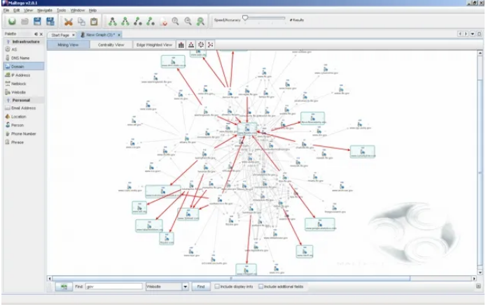 Maltego是一個偉大的駭客工具,可以分析人員,公司,網站,域名,DNS名稱,IP位址,文檔等等之間的真實世界鏈接。基於Java,這個工具運行在一個易於使用的圖形界面,掃描時丟失了自定義選項。