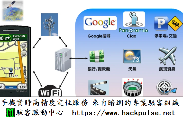 1三角定位法: 透過手機與至少三個基站的信號交叉定位,計算手機與各個基站之間的距離,從而確定手機的位置。
